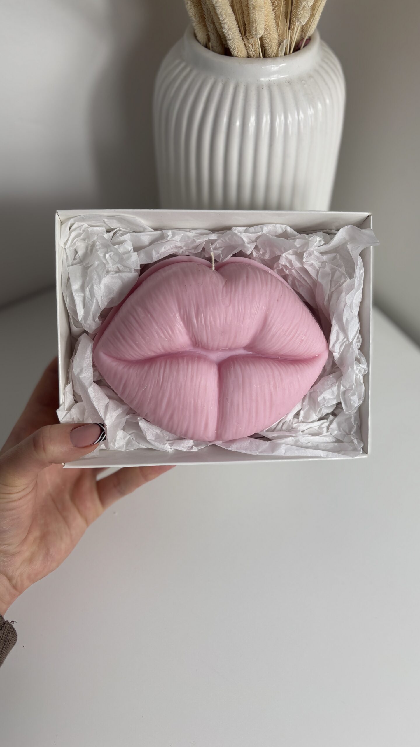 Jest to wyjątkowy dodatek, który przyciąga wzrok i dodaje wnętrzu charakteru. Jej zmysłowa forma sprawia, że idealnie sprawdzi się zarówno jako oryginalna dekoracja, jak i stylowy prezent na różne okazje – urodziny, walentynki, parapetówkę czy drobny upominek bez okazji.